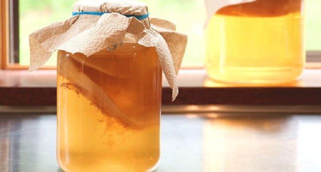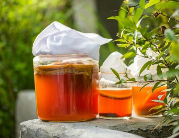 Sau đó, bạn đổ thu được với số lượng 3 thìa lớn vào chảo, đổ 500 ml nước nóng và cho vào nồi cách thủy trong 5 phút. Nước dùng thành phẩm được ngâm trong 2 giờ dưới nắp. Khi nó đã nguội hoàn toàn, nó sẽ cần được lọc qua vải thưa và kết hợp với 1 ly truyền kombucha.
