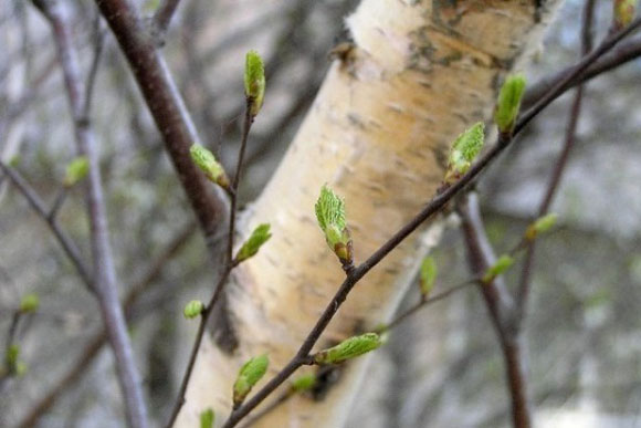 - Các chồi trên cây bạch dương bắt đầu phát triển về kích thước - để phồng lên.