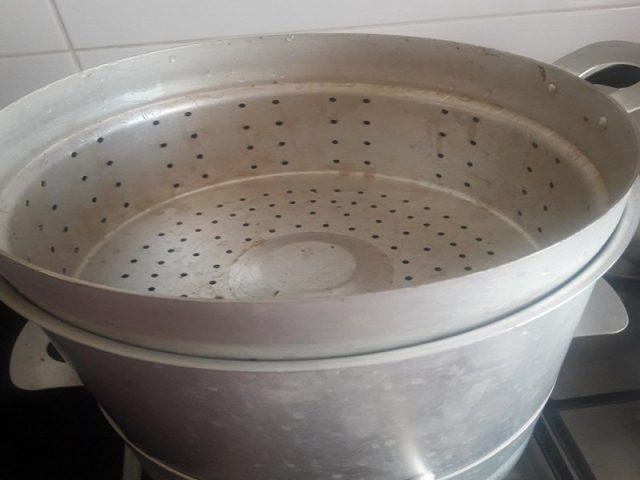- Khối lượng thu được được trải trong một cái chảo và đun sôi.