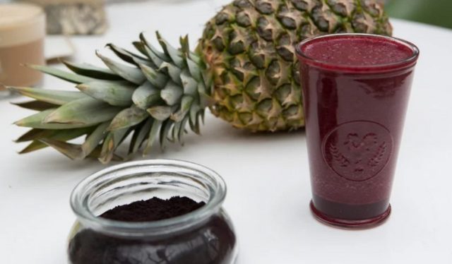 Cắt dứa tươi không vỏ thành từng miếng, xay nhuyễn. Sữa chua tự nhiên ít chất béo, mật ong, vỏ chanh được thêm vào để tăng hương vị, mọi thứ lại được gián đoạn cho đến khi tạo thành bọt.