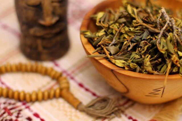 - 1 thìa sagan-dail herb được trộn với 1 thìa lá trà thông thường;