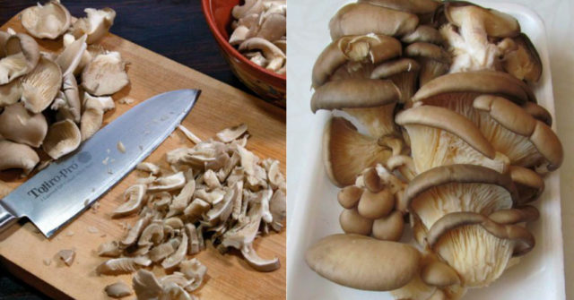 - Nấm sò cắt nhỏ, cho vào chảo. Đun nhỏ lửa trong một phần tư giờ.