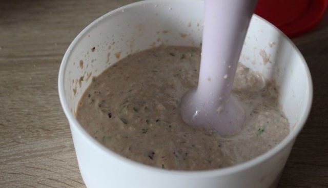 - Kết hợp rau và nấm, ngắt bằng máy xay sinh tố.