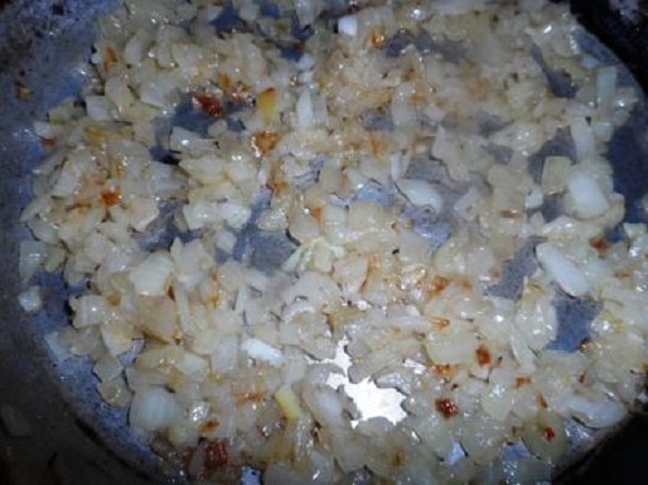 - Đun nhỏ hành tây đã cắt thành khối hoặc nửa khoanh trong dầu cho đến khi trong suốt.