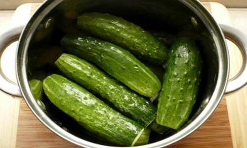 Đầu tiên, dưa chuột, như mọi khi, nên được ngâm. Nếu bình được sử dụng làm đồ đựng thì chỉ cần rửa sạch mà không cần tiệt trùng. Tỏi được cắt thành từng miếng và một phần thì là được đặt trước vào đáy hộp đã chọn. Sau đó, dưa chuột và phần còn lại của thì là được xếp chồng lên nhau. Muối được gửi cuối cùng đến thùng đã sử dụng. Sau đó, đổ nước sôi ngập dưa chuột và đậy nắp lại hoặc áp chảo.