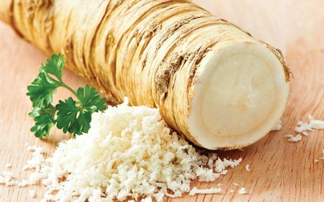 - Rễ cải ngựa (30 g) được lăn qua máy xay thịt.