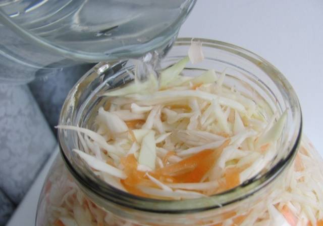 Phiên bản cổ điển của việc chuẩn bị bắp cải muối không liên quan đến việc sử dụng giấm. Trong trường hợp này, ngâm bắp cải với nước muối được thực hiện như sau: