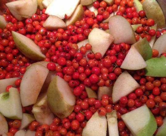 Mứt Rowan với lê có thể được nấu theo nguyên tắc tương tự như với táo. Lê sẽ bổ sung thêm độ ngọt và độ ngon cho phôi, vì vậy lượng đường trong công thức có thể giảm một chút nếu muốn.