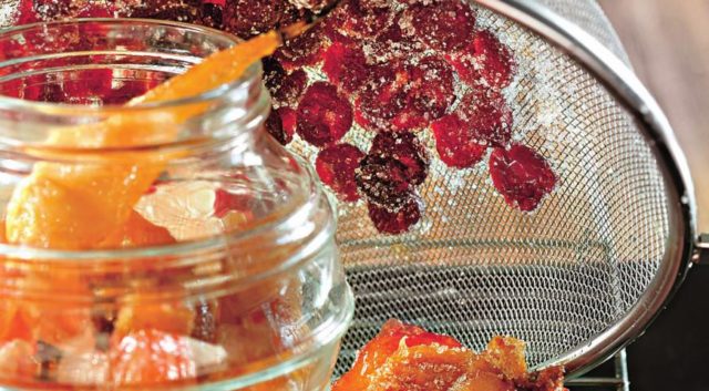 - Sau đó lặp lại quá trình này vài lần. Trái cây và quả mọng nên giữ nguyên hình dạng của chúng, nhưng màu sắc phải chuyển sang màu hổ phách mật ong.