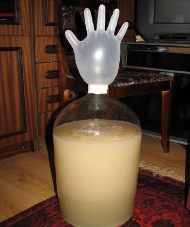 - Kết hợp men với nước trái cây bay hơi, thêm sữa, để lên men. Bình chứa được bịt kín bằng một vòng đệm nước để thoát khí được tạo thành một cách hiệu quả và ngăn dòng khí từ bên ngoài vào.