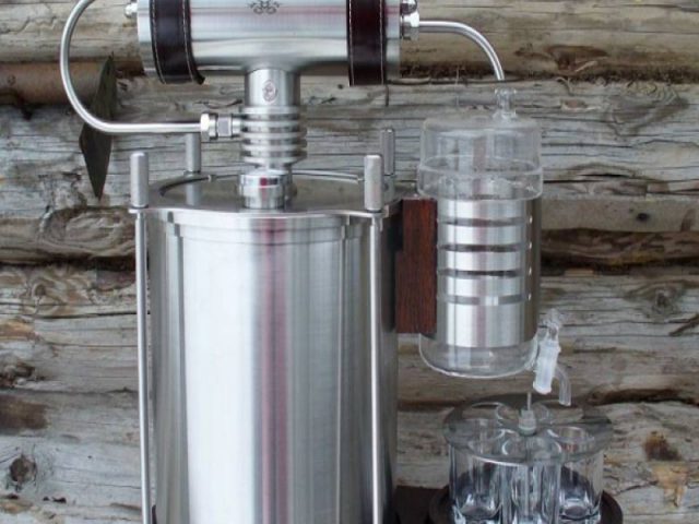 - 1 lít moonshine được đổ vào xô, điều quan trọng là phải luôn có máy đo nồng độ cồn trên tay.
