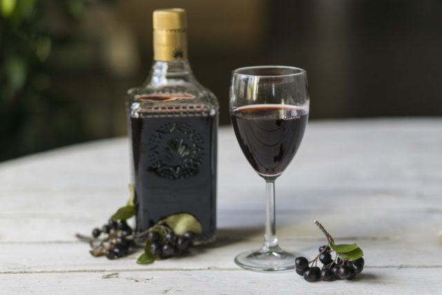 - Đồ uống có độ cồn thấp chokeberry tự làm đã sẵn sàng để uống.