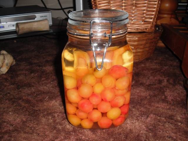 Sau một tháng, lọc nó và đun sôi xi-rô từ đường tinh luyện và nước. Khi nó hoàn toàn nguội, trộn nó với chất lỏng. Truyền thức uống mận đã hoàn thành trong sáu tháng.