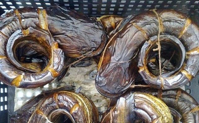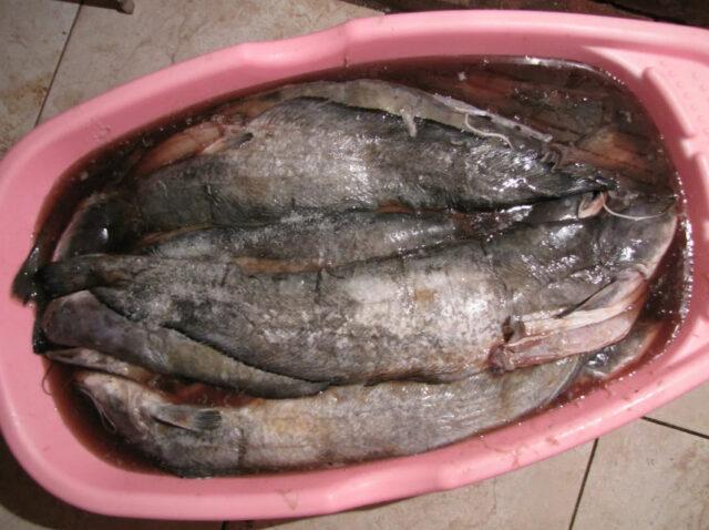 Hết thời gian chờ cá phải vớt ra, thả vào thau nước mát 20 phút. Quy trình này sẽ loại bỏ lượng muối dư thừa. Sau đó, xác thịt phải được thấm khô bằng khăn giấy, rồi treo ngoài bóng cây hoặc dưới tán cây cho khô trong 2 giờ. Và để bảo vệ cá da trơn khỏi côn trùng, bạn cần quấn nó bằng gạc, trước đó đã ngâm trong dung dịch dầu thực vật và giấm.