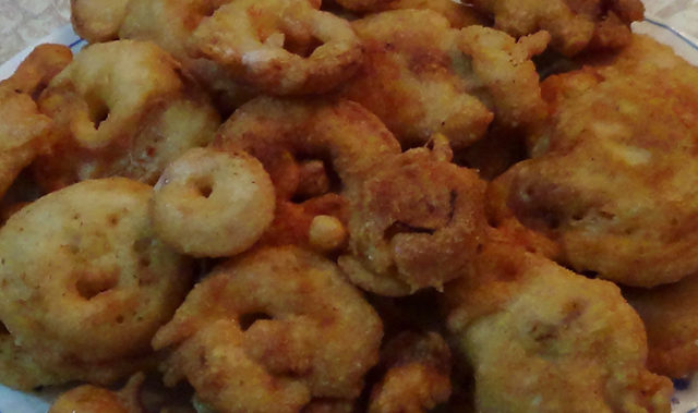 - Nêm muối và tiêu, đánh cho đến khi mịn. Nhúng quà rừng vào bột, trụng qua dầu sôi.