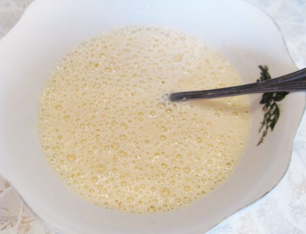 - Đánh tan sữa và trứng trong một hộp đựng chung.