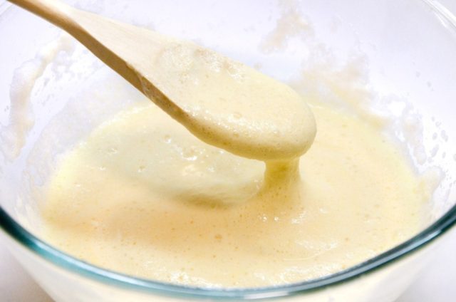 - Đánh tan khối lượng thu được bằng máy đánh trứng.